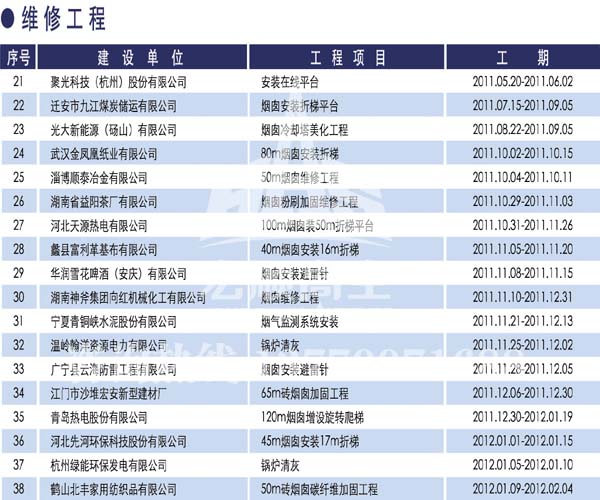 宏順建設(shè)工程有限公司是國家批準(zhǔn)成立的專業(yè)高空作業(yè)企業(yè):承攬過(國內(nèi).國外)煙囪新建、煙囪防腐、吊機(jī)防腐、水塔防腐、管道防腐、龍門吊防腐、儲(chǔ)存罐防腐、煙囪內(nèi)壁防腐等高空作業(yè)工程。具有“不搭腳手架 、 不需要停產(chǎn)”施工特點(diǎn)。